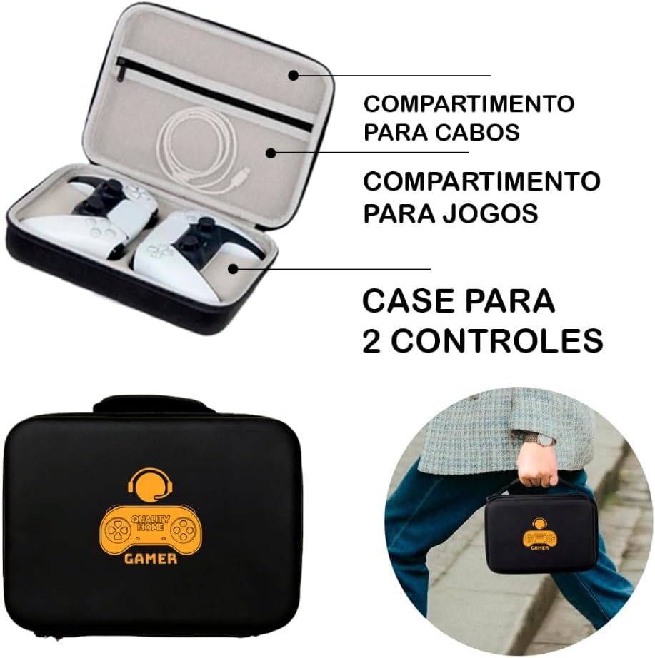 🔹 Ideal para transporte – Seja para viagens, campeonatos, eventos ou até para a casa de amigos, essa maleta facilita o transporte do seu controle PS5 com total proteção e praticidade.