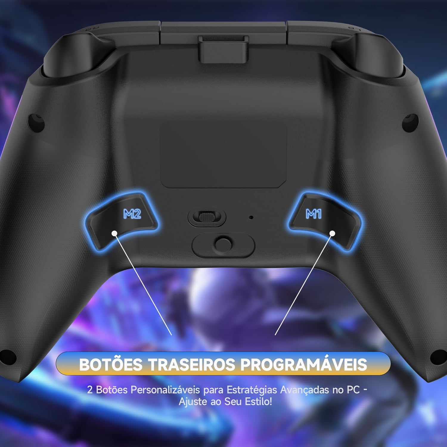 Gatilhos Lineares e Botões Customizáveis: Com gatilhos de resposta linear e dois botões traseiros programáveis (dual back buttons), personalize seu controle sem fio pc ou gamepad para estratégias avançadas. Ajuste conforme seu estilo de jogo!