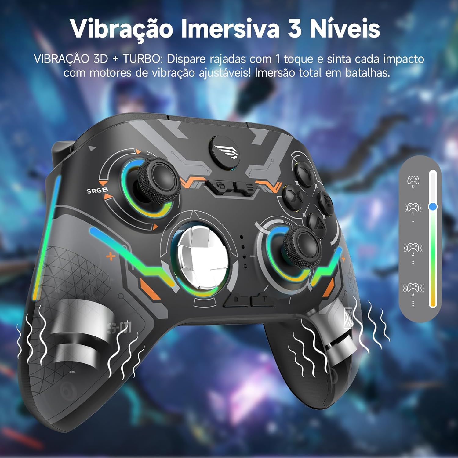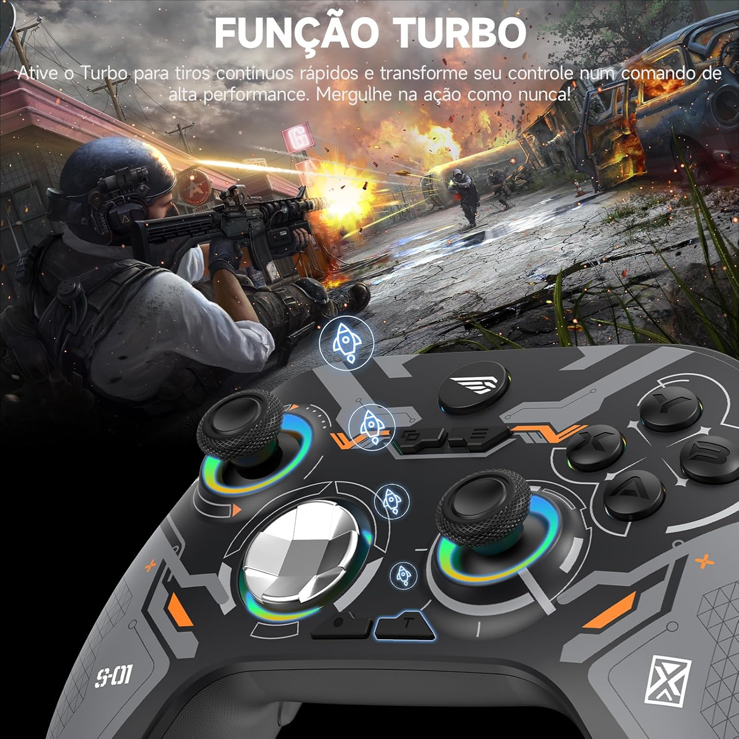 Função Turbo e Vibração Intensa: Ative o Turbo para tiros rápidos com um botão, e aproveite dois motores de vibração com 3 níveis de intensidade. Transforme seu controle pc ou controle xbox one em uma experiência imersiva.