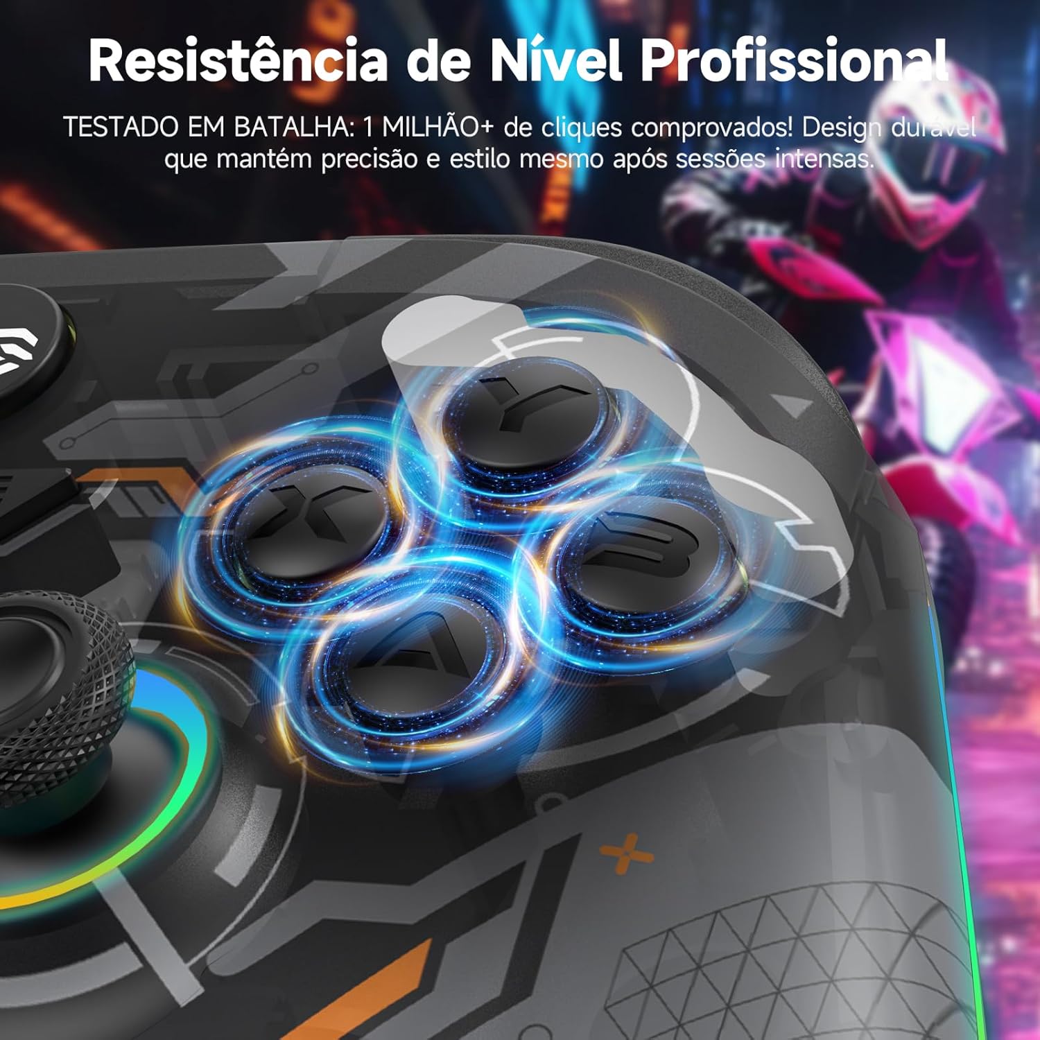 Durabilidade Comprovada em Laboratório: Testado com mais de 1 milhão de cliques em botões! Mantém desempenho perfeito e design elegante mesmo após uso intenso. O controle sem fio pc e gamepad mais resistente para batalhas épicas.