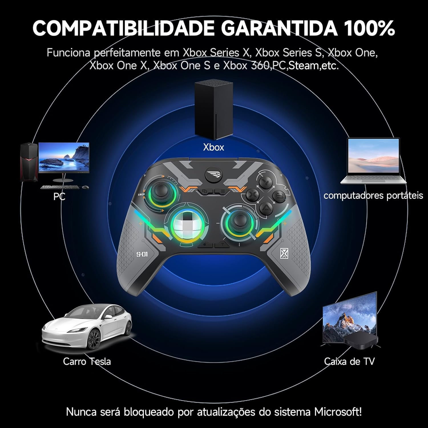 Compatibilidade Total Plug and Play: Funciona perfeitamente com Xbox Series S, Xbox Series X, Xbox One, PC Windows e Steam. Conecte e jogue instantaneamente como controle xbox sem fio ou controle pc – sem necessidade de drivers adicionais.