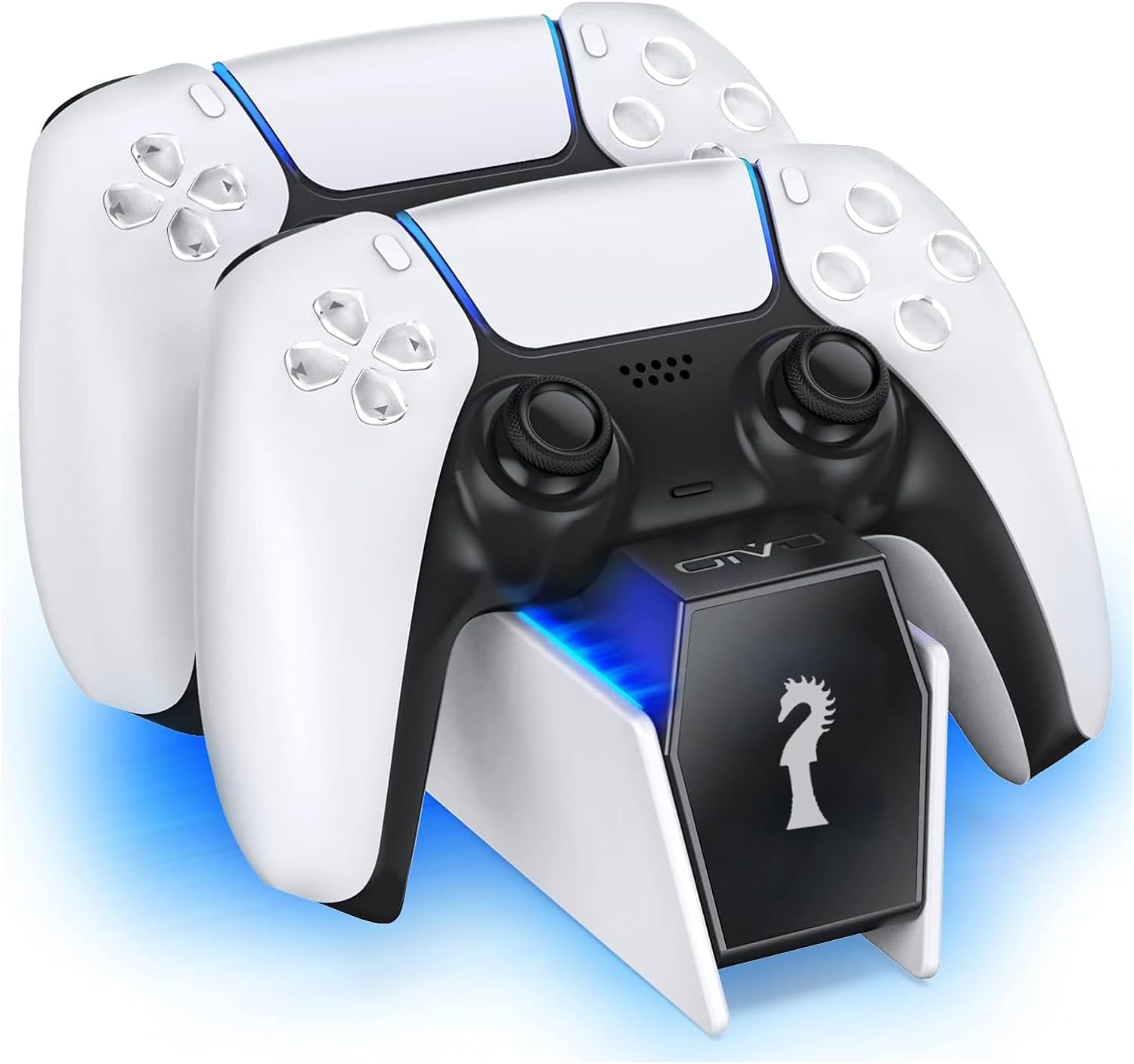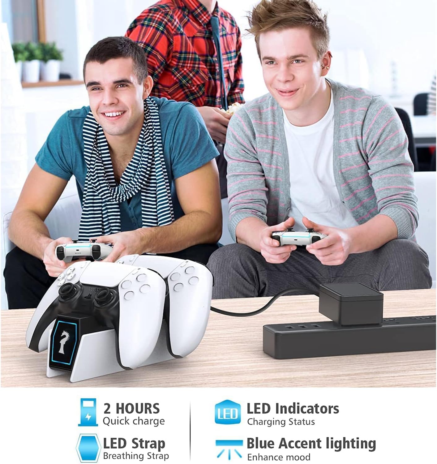 🎮【Carregamento rápido para dois controles PS5】Esta estação de carregamento para controles PS5 foi especialmente projetada para carregar dois controles PS5 simultaneamente, alimentados diretamente pelo disco/console digital PS5 por meio de um dos cabos de carregamento PS5 incluídos.