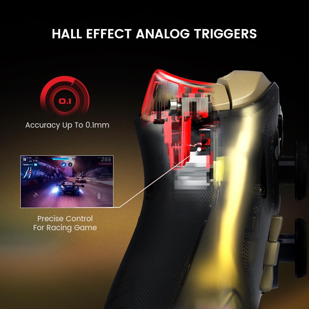 O GameSir Kaleid Flux oferece deslizamento antideslizante com os bastões sensores de efeito Hall GameSir.