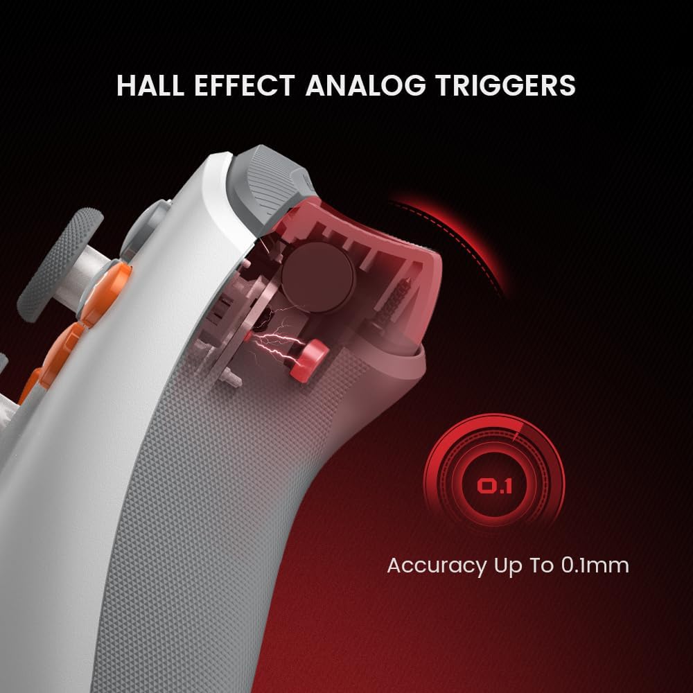 Precision-tuned Hall effect analog triggers: With precision-tuned Hall Effect triggers for a consistent, smooth pull, get ready to race with confidence and enjoy a seamless gaming experience like never before.