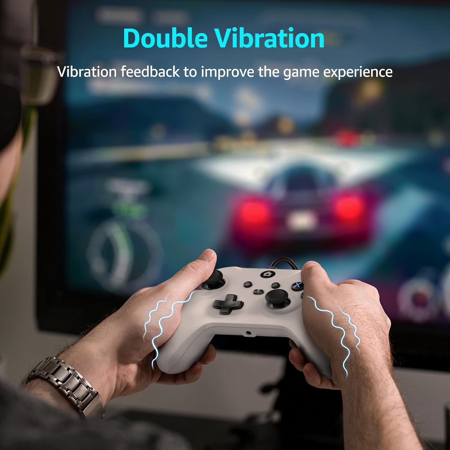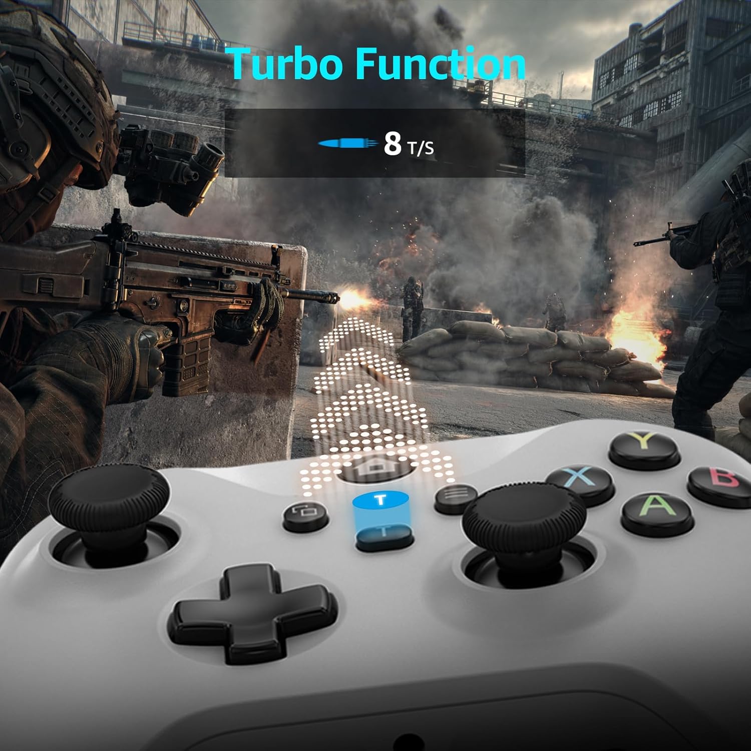 【Versatile Platform Support】This controller is designed to work seamlessly with a variety of systems, including Xbox One, Xbox One S/X, Xbox Series S/X, PCs, iOS devices, and Android devices. 【Reliable Wired Connection】Featuring a wired connection, this controller delivers consistent signal transmission and minimal latency, guaranteeing precise and swift responses in gaming (cable length: 98 inches). 【Turbo Mode Advantage】With the Turbo function, experience enhanced gaming through swift, automated button presses that lessen manual effort and boost performance in fast-paced action sequences (Operating Speed: 8Hz). 【Integrated 3.5MM Audio Jack】Equipped with a 3.5mm headphone jack, the controller enables clear communication with your team, thereby refining strategic coordination and overall performance during gameplay. 【Dual Vibration Feedback】The controller incorporates dual vibration motors, offering immersive feedback that enhances the realism of the gaming experience, making it ideal for genres like shooting and fighting games.