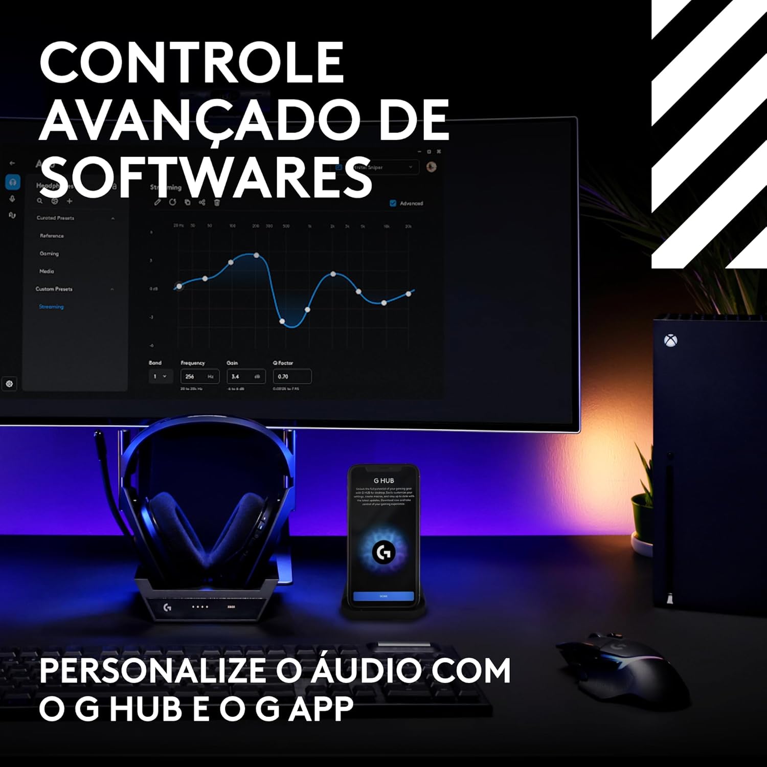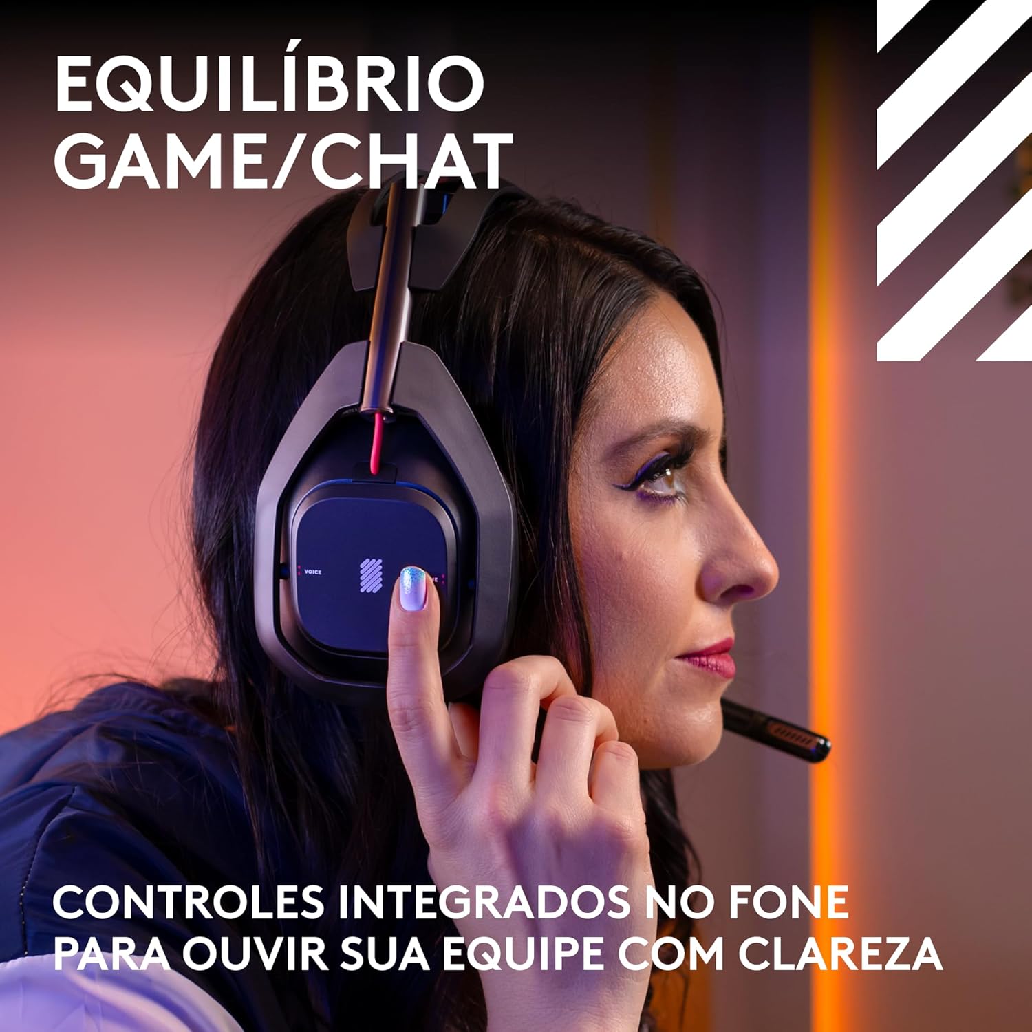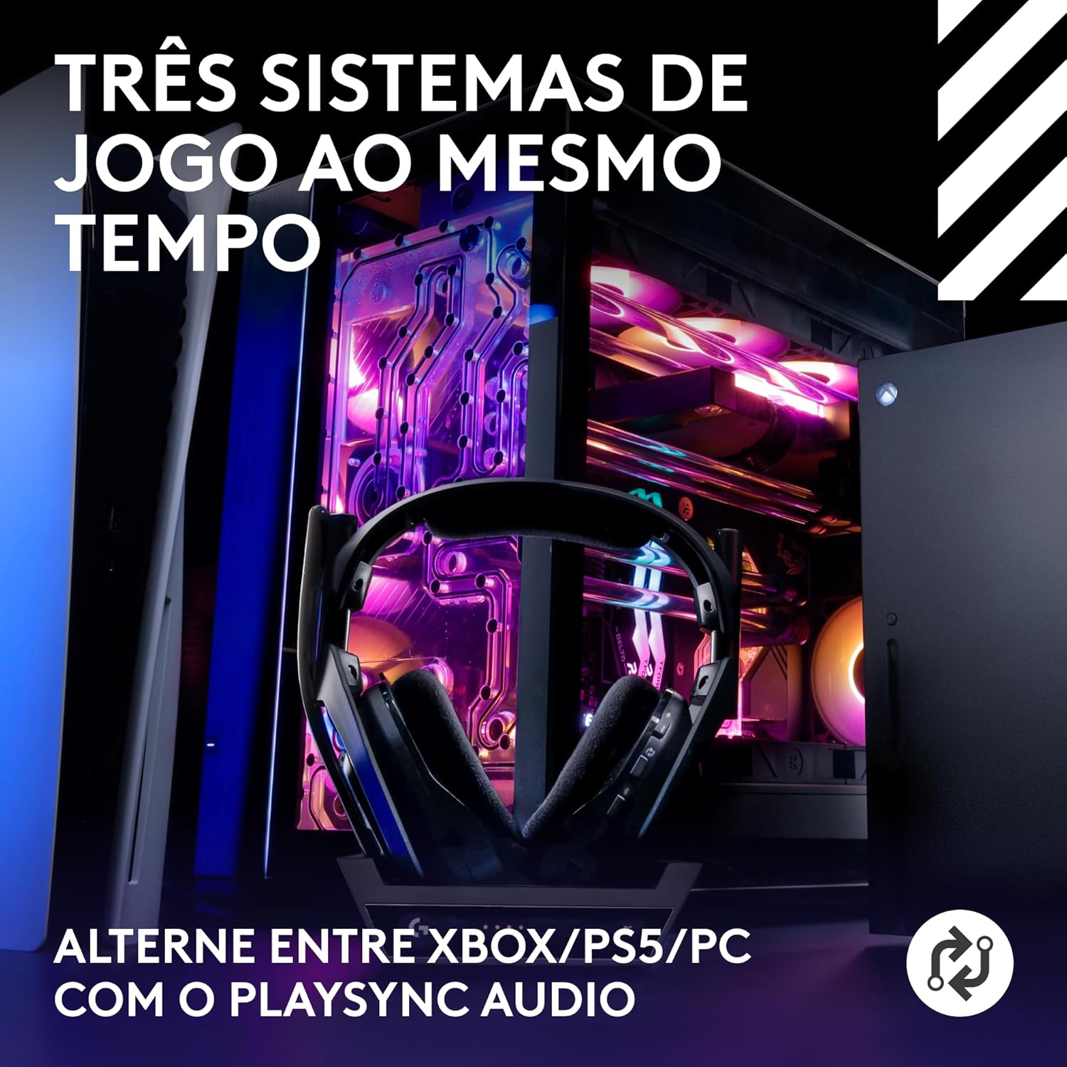 A dupla headset gamer sem fio Logitech A50 LIGHTSPEED + Base Station foi feita para jogar. Com o PLAYSYNC, você pode conectar e alternar rapidamente entre três sistemas de jogo, inclusive Xbox Series X|S, PS5, Nintendo Switch, PC/Mac e muito mais, tudo a partir de um único botão integrado no fone. Os drivers de áudio PRO-G GRAFENO garantem clareza e exatidão sem precedentes, essenciais para envolvimento total e a tomada de decisões no jogo. O LIGHTSPEED oferece os mais altos níveis de desempenho sem fio, e o microfone de alta resolução garante uma voz com qualidade de transmissão. A dupla headset sem fio com microfone A50 LIGHTSPEED + base station conta com design e engenharia feitos para garantir a melhor experiência possível de jogos para console multiplataforma.