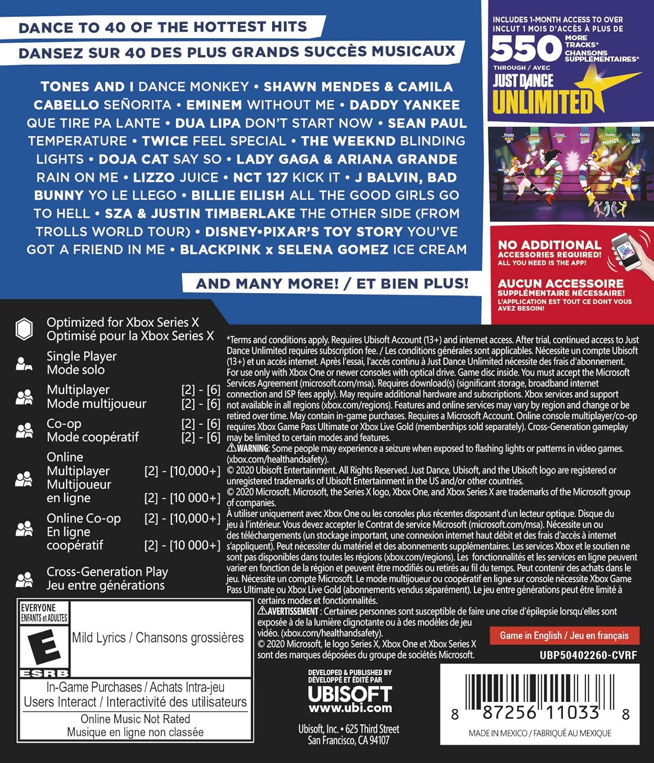 Este pacote contém a versão Xbox One e a versão Xbox Series X separadamente quando estiver disponível em 24 de novembro. Just Dance 2021 é o jogo de dança definitivo, com 40 novas faixas de sucessos como “Rain On Me” de Lady Gaga
