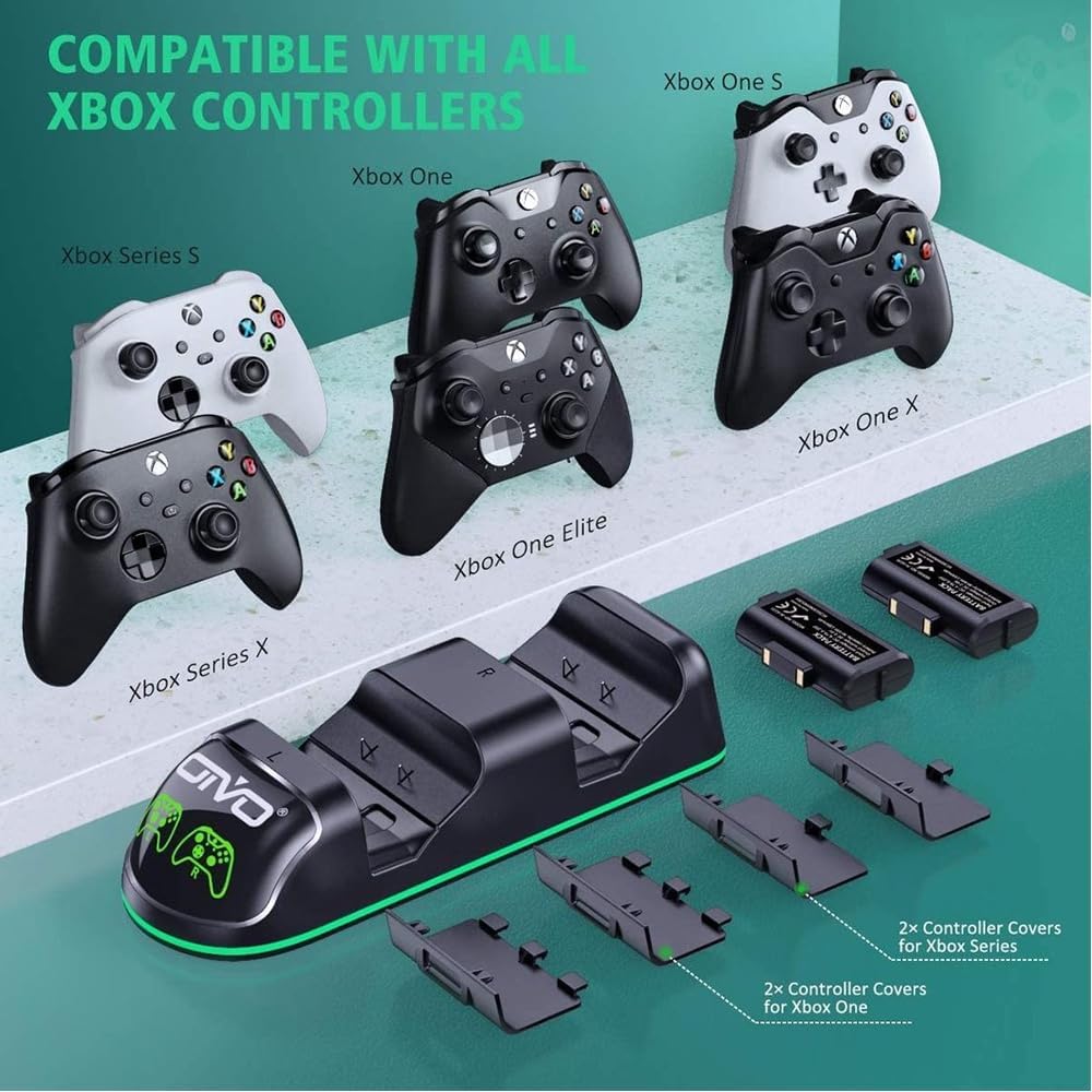 Kit Base Carregador Duplo Dock Led + 2 Baterias Recarregáveis Controle Xbox Series X/S Xbox One Elite Dê um upgrade no seu arsenal de jogos com o nosso Kit Carregador para Controles Xbox, especialmente projetado para os exigentes jogadores de Xbox Series X/S e Xbox One Elite. Este kit abrangente não apenas simplifica o carregamento, mas eleva sua experiência de jogo a um novo patamar. Características: – Compatibilidade: Compatível com a Xbox One/One S/One X e Xbox Series. – Carregue dois controles ao mesmo tempo. – indicadores LED: leva cerca de 2.5-4 horas para carregar. VERDE= Carga Completa. – Proteção: chip embutido de proteção contra curto-circuito e variações de corrente. Nosso Kit Carregador para Controles Xbox Series X/S e Xbox One Elite está pronto para acompanhar você. Simplifique sua vida de jogador e garanta que seus controles estejam sempre prontos para a ação. Invista na conveniência, invista no seu jogo! Itens Inclusos: – 1 Estação de Carregamento Dock com LED indicador de carga. – 2 Baterias – 2 Tampas de Bateria para Xbox One – 2 Tampas de Bateria para Xbox Series – 1 Cabo – 1 Manual Do Usuário