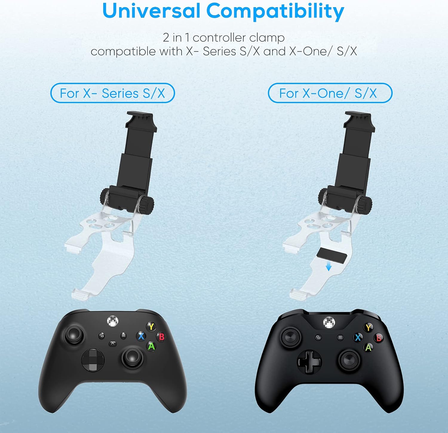 【Compatível com】 Este clipe de grampo para celular foi especialmente projetado para Xbox Series S, Xbox Series X, Xbox One, Xbox One X, Xbox One S. Fácil de instalar e conectar o controle e o celular. Adequado para a maioria dos smartphones no mercado, como telefones Android Samsung, HTC, LG, Google, Sony, etc.