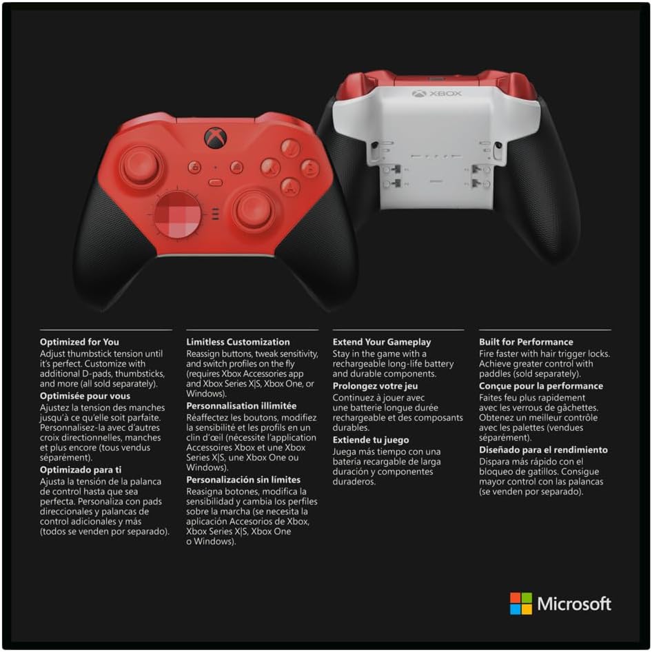 Controle sem fio de alto desempenho: O Controle Xbox Elite Series 2 Core Red oferece uma jogabilidade sem fios precisa e reativa.