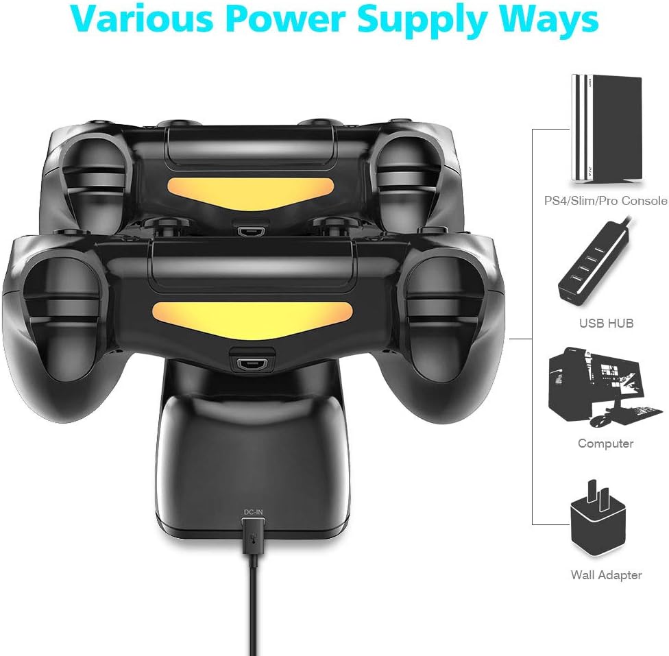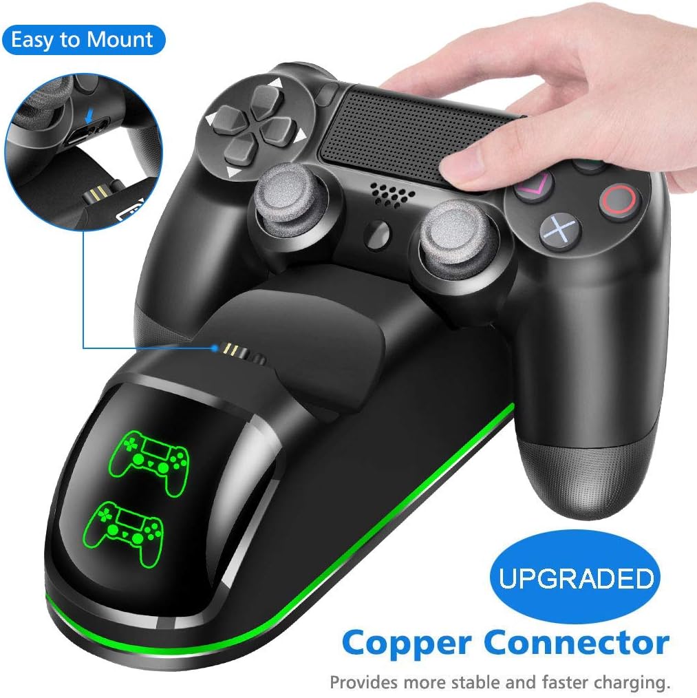 【Design especial para compatível com todos os controles de PS4】 Este carregador controlador P4 suporta controles regulares PS4/PS4 Slim / PS4 Pro.