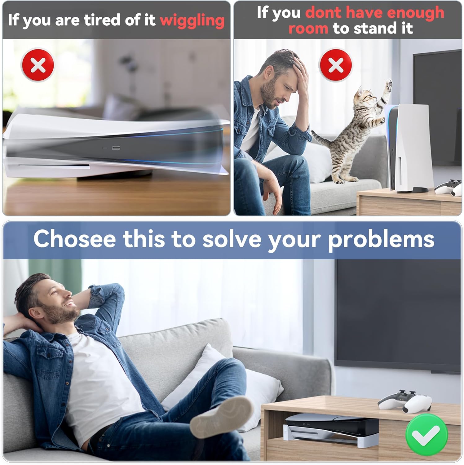 [ Upgrated PS5 Stand with Support Rods] The bottom of the PS5 slim horizontal stand is equipped with support rods that connect the both sides of ps5 stand to protect the console and improve stability, also with anti slip pads on both sides and bottom of ps5 slim stand, and use screw to fix the console on PS5 sideways stand, it is sturdy enough to securely hold the PS5 console in a horizontal position to prevent any wobbling or tipping.