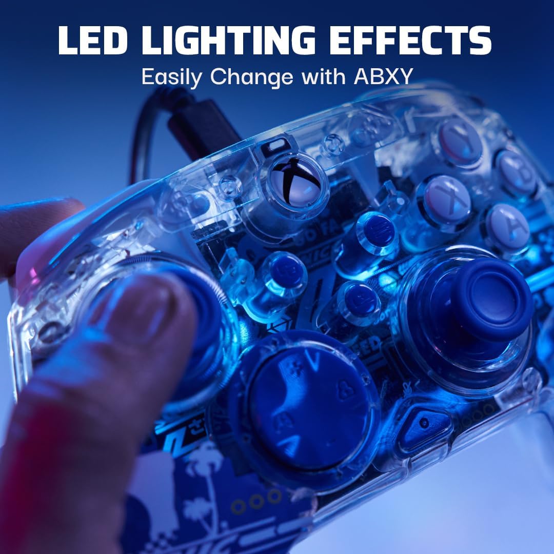 Immerse yourself in a realm of possibilities with the Sonic Speed REALMz™ Wired Controller. Collect the immersive universe from your favorite games with this one-of-a-kind controller featuring a figurine living inside the grip. Discover the world inside your game and the controller with its unique, multi-layer design showcasing iconic artwork from your favorite titles. Use your go-to headset with the built-in 3.5mm jack for chat and immersive audio while the controller’s patented D-pad audio controls allow you to make rapid-fire changes to volume and game/chat balance. With the free PDP Control Hub app, you can customize your controller by re-mapping buttons, reconfiguring triggers, adjusting deadzones, and more. Effortlessly change the LED lighting effects using the ABXY buttons to add another level to the look of your controller. Play comfortably for hours on end with an ergonomically designed shape and long-lasting performance. Enhance your gameplay with rumble motors, impulse triggers, and programmable back buttons for added precision. Explore the realmz with this uniquely immersive controller, officially licensed by Xbox and SEGA®.
