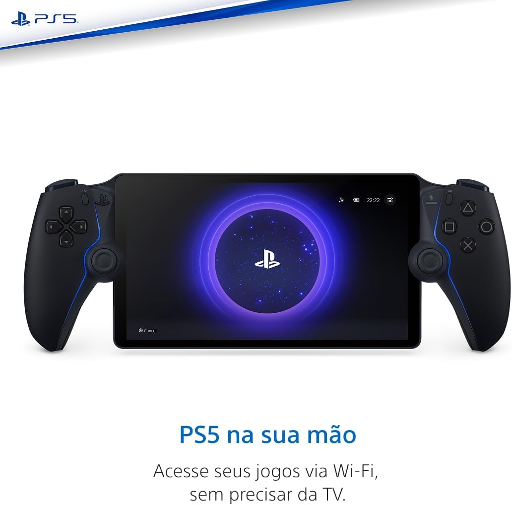 Aproveite para dar uma cara nova e elegante para seus jogos* de PS5® com o reprodutor remoto PlayStation Portal™ Midnight Black. Curta com estilo os sons envolventes e realistas onde quer que você jogue remotamente, usando os elegantes fones de ouvido sem fio PULSE Explore™ Midnight Black (vendidos separadamente). Faça um upgrade em seus outros acessórios de jogo para combinar com as tampas de console PS5 e os controles sem fio DualSense® e DualSense Edge®, todos já disponíveis na cor Midnight Black. *O reprodutor remoto PlayStation Portal pode transmitir jogos compatíveis instalados no console PS5. O reprodutor remoto PlayStation Portal requer Wi-Fi com Internet banda larga de pelo menos 5 Mbps. Para ter uma experiência de jogo aprimorada, recomenda-se uma conexão de pelo menos 15 Mbps. A qualidade e conectividade da sua experiência de jogo pode variar dependendo do ambiente da sua rede. É necessário ter um console PS5 e uma conta na PlayStation Network. O console PS5 deve estar conectado a uma Internet banda larga e também deve estar ligado ou no modo de repouso. Além disso, ele precisa ser pareado com o seu reprodutor remoto PlayStation Portal.