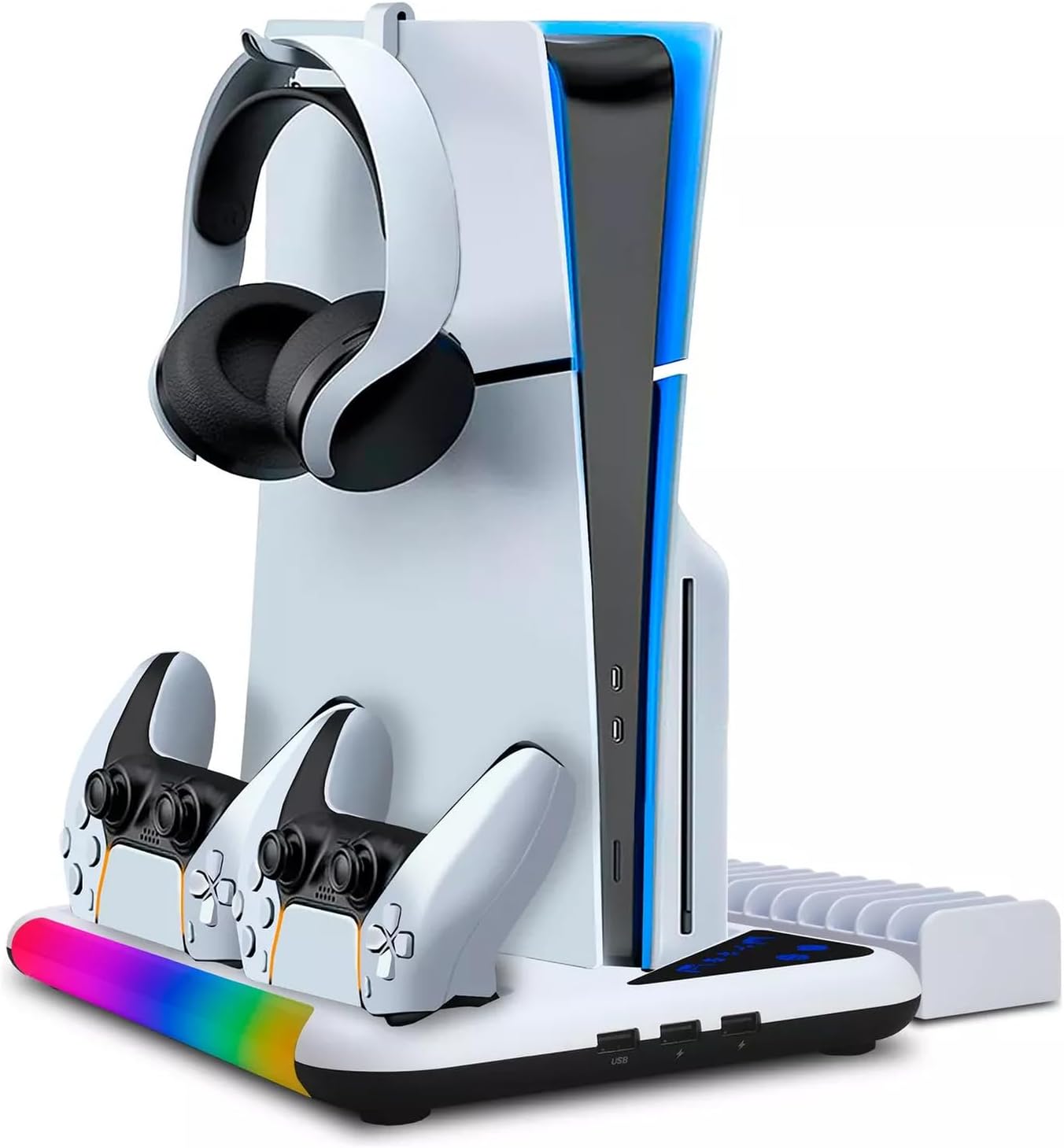 Construído com materiais de alta qualidade, nosso suporte vertical para ps5 pode acomodar o console ps5 e os controles Dualsense ps5. Ele permite que todos os acessórios do ps5 sejam colocados de forma organizada para manter sua área de trabalho arrumada. Inclui um parafuso para fixar com segurança o console ps5, evitando batidas acidentais.