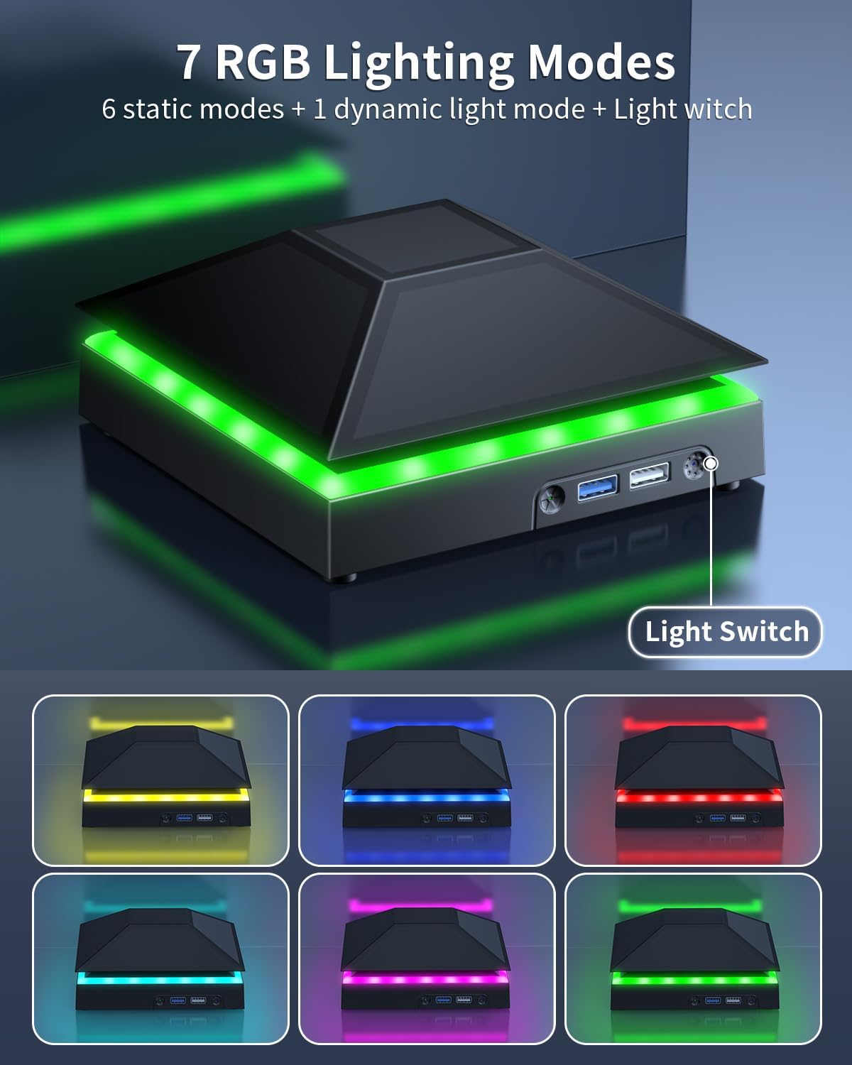 【Faixa de luz colorida】—- O suporte de resfriamento do Xbox Seris X suporta luzes coloridas e pode mudar a cor da luz com um interruptor de toque independente. A faixa de luz contém 6 monocromáticos e 1 cor mista. Você pode usar o interruptor de toque independente para mudar suas cores favoritas e ter uma atmosfera mais no processo do jogo.