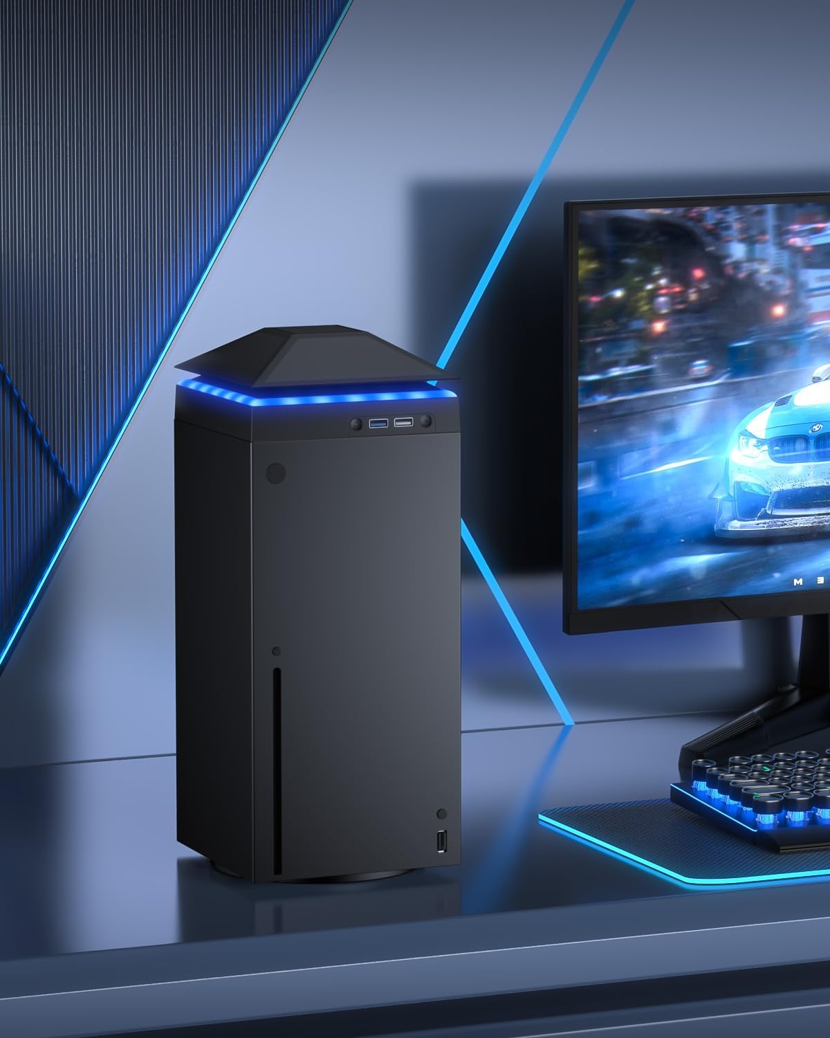 O kit de acessórios para ventilador de refrigeração Meneea para Xbox Series X integra muitas funções, como ventilador de resfriamento superior, à prova de poeira, faixa de luz colorida, interface USB para transmissão de dados e interface USB para carregamento.