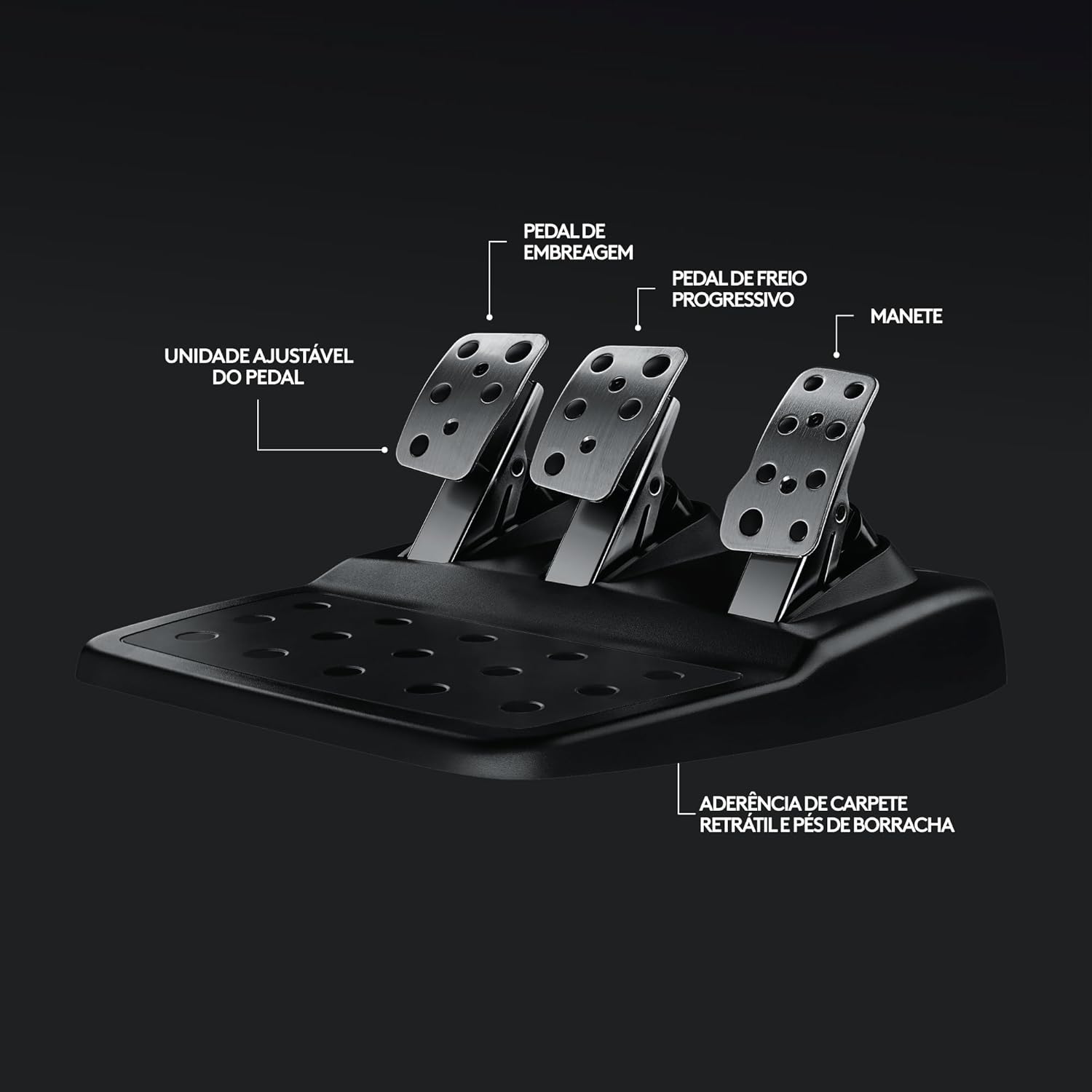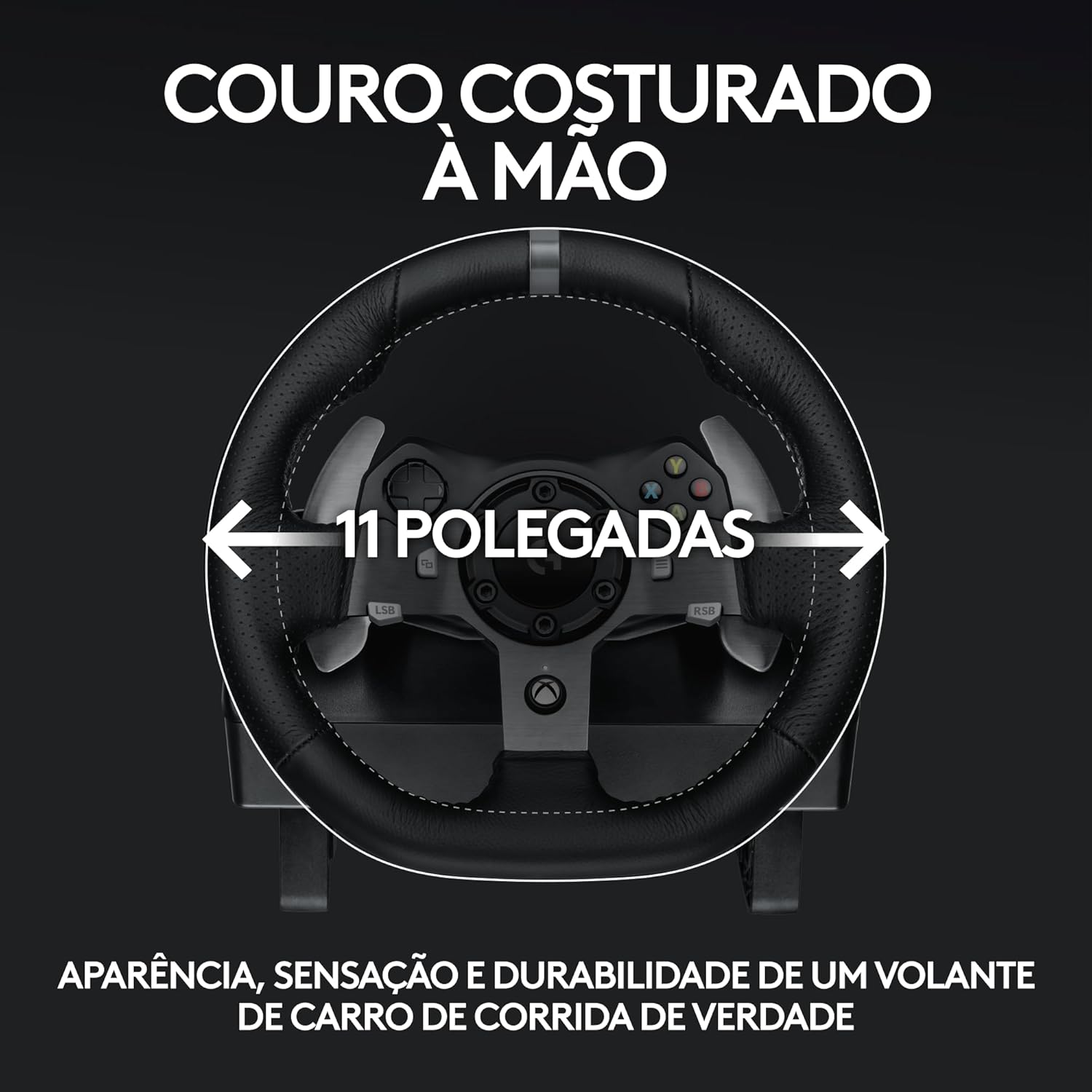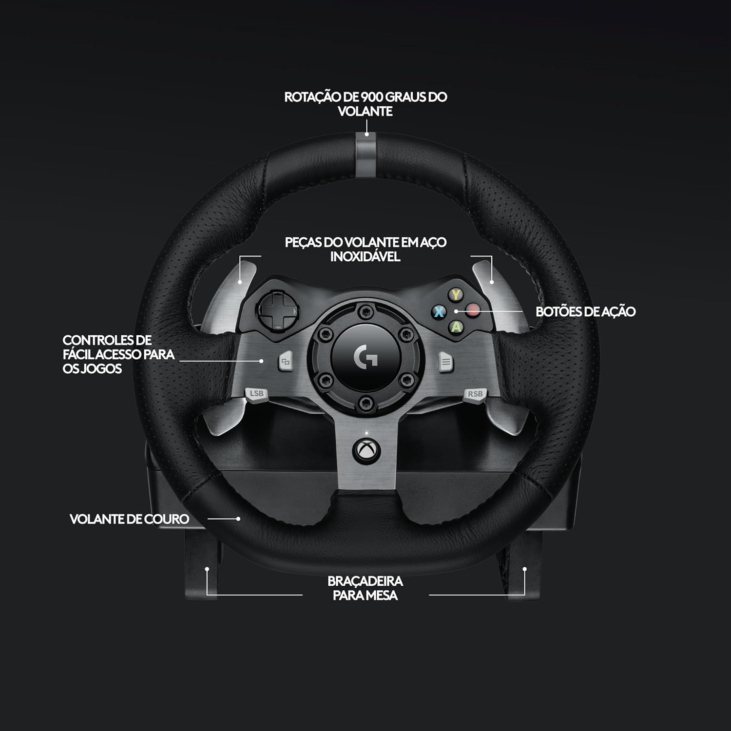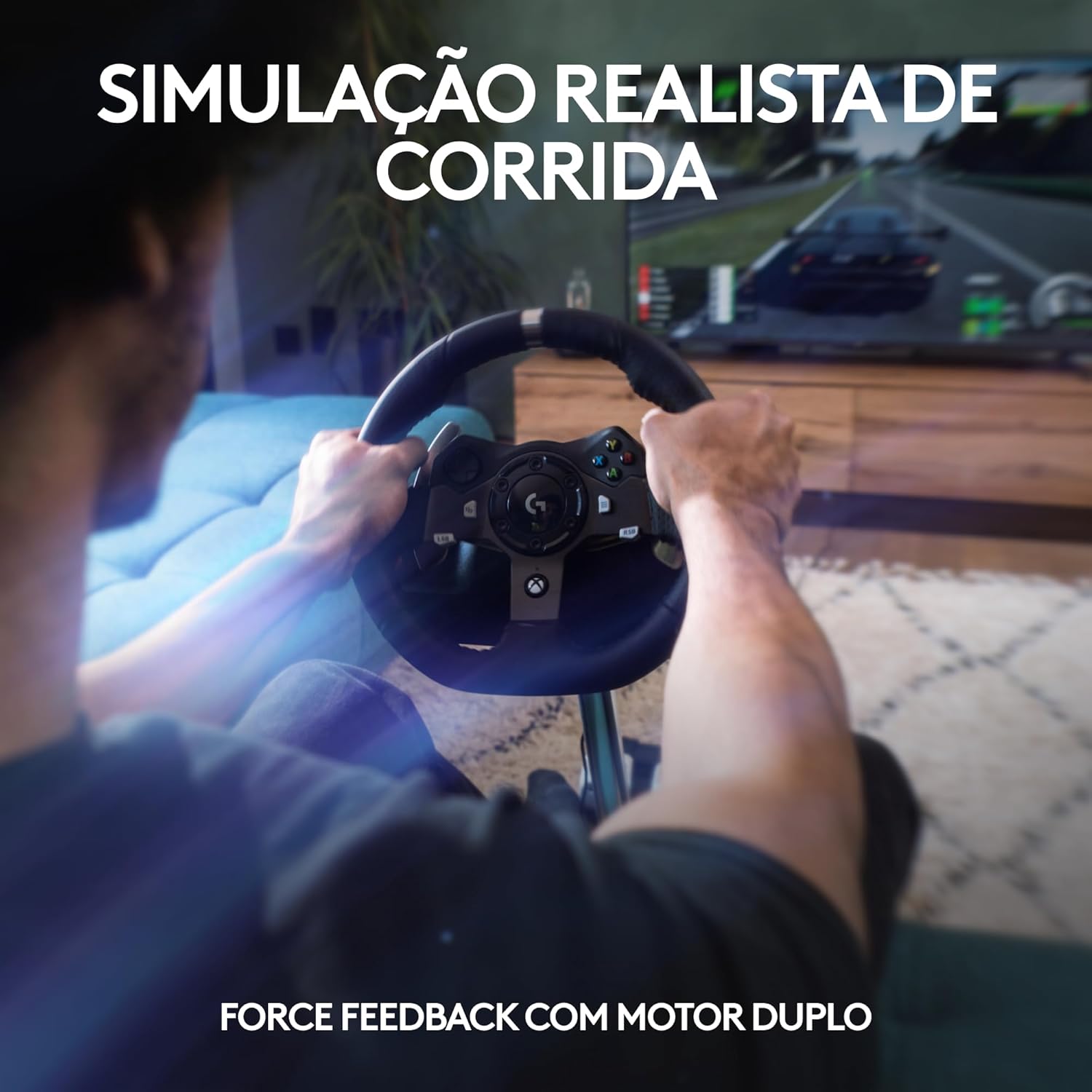 O Logitech G920 Driving Force é volante simulador de corrida definitivo para os mais recentes títulos de Xbox One e PC, incluindo feedback de força de dois motores e embreagem helicoidal para uma direção silenciosa e macia. O volante também vem com controles internos e câmbios de leme fáceis de acessar, para você realizar mudanças de marcha precisas e bruscas. O pedal separado fornece controle reativo natural com um pedal de freio não linear que emula a sensação de dirigir em veículos de alto desempenho. O Driving Force foi projetado para proporcionar conforto e durabilidade, com couro costurado à mão e componentes de aço inoxidável. Pontos embutidos de parafusos e presilhas mantêm o volante montado com firmeza em uma mesa ou suporte de corrida, minimizando os movimentos ou vibrações em manobras agressivas.