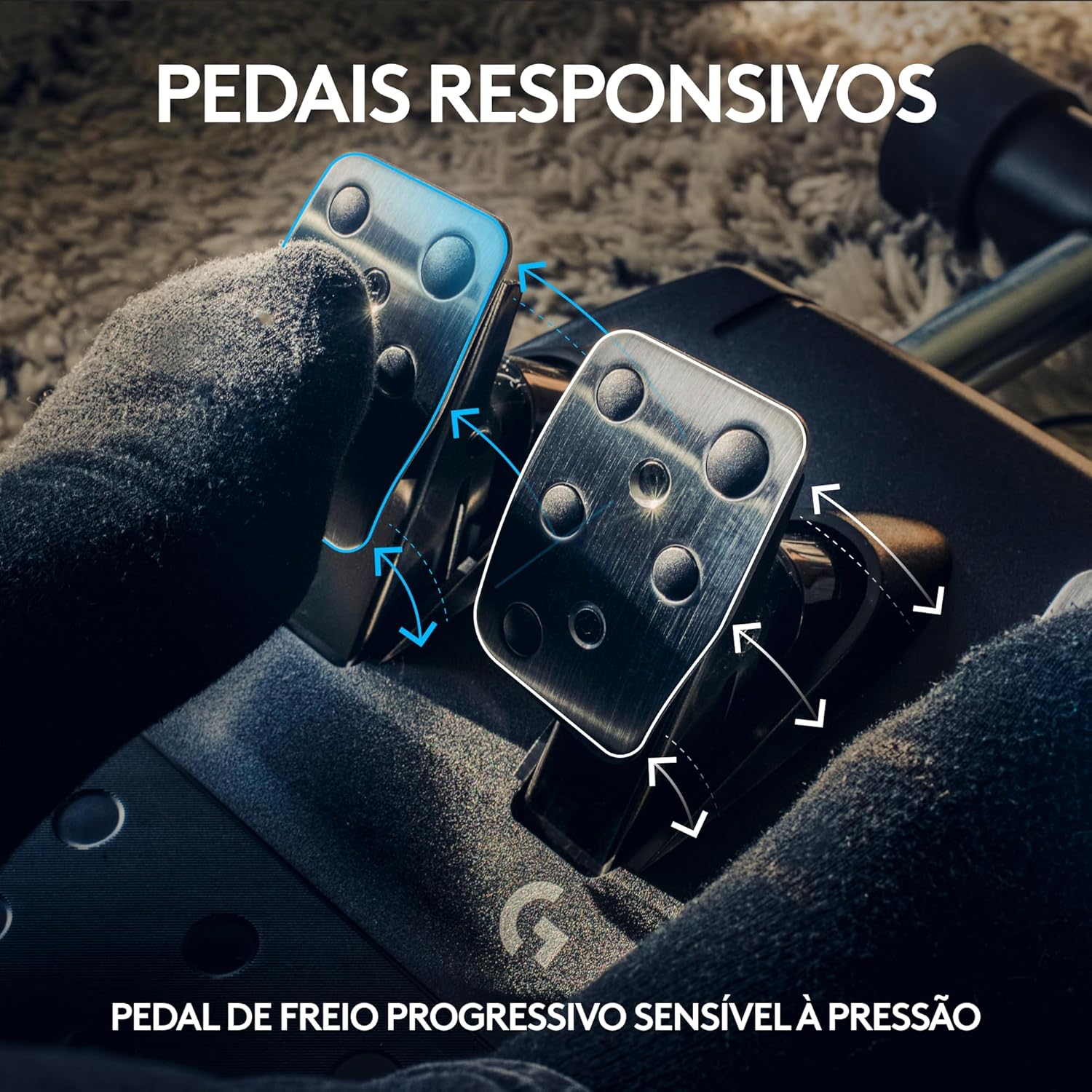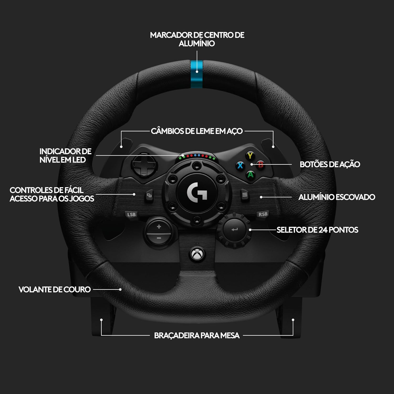 MATERIAIS PREMIUM – Design Logitech G atualizado com volante de metal, couro costurada à mão e pedais de metal polido.