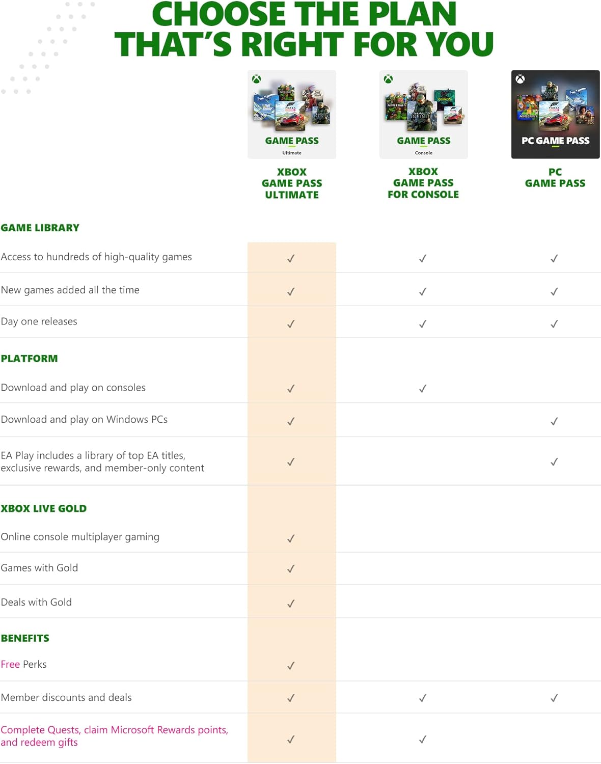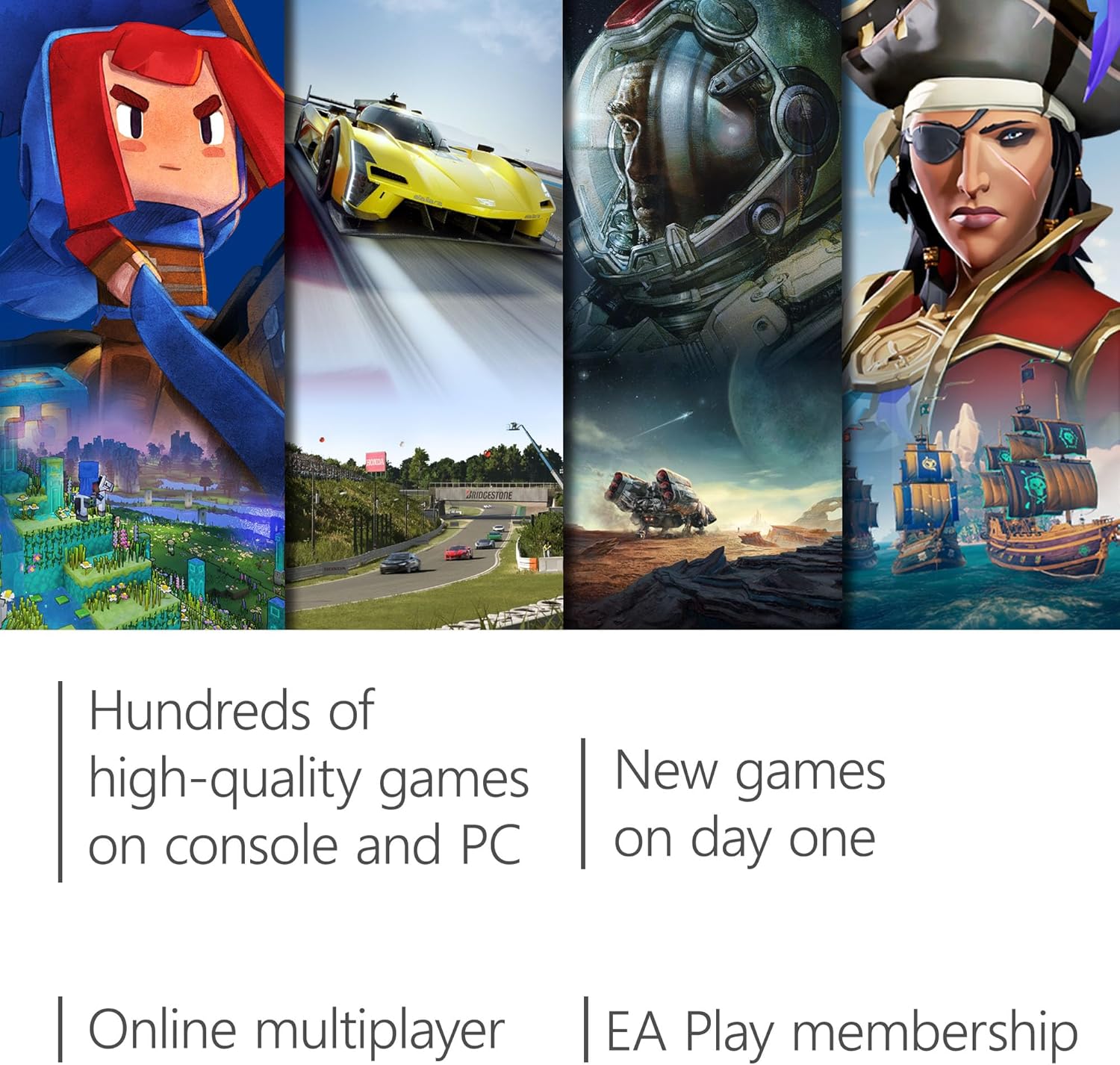 “Seja o primeiro a jogar novos jogos como Starfield e Forza Motorsport no primeiro dia para que você nunca perca nada e aproveite centenas de jogos de alta qualidade como Minecraft Legends e muito mais com o Xbox Game Pass Ultimate. Inclui multijogador online para que você possa jogar junto com amigos no console e PC, e EA Play, dando acesso aos principais títulos no console e PC, incluindo séries mais amadas como Battlefield e Star Wars. Além disso, você obtém mais dos jogos que você ama, incluindo desafios e recompensas exclusivos no jogo, conteúdo especial exclusivo para membros e testes antecipados de novos títulos selecionados da EA. Com o Game Pass Ultimate, você também recebe vantagens incluídas, como conteúdo no jogo, consumíveis e muito mais. Obtenha descontos para membros em jogos selecionados na biblioteca do Xbox Game Pass e complementos de jogos relacionados. Entre no coração da comunidade Xbox e junte-se a milhões de jogadores prontos para jogar juntos.