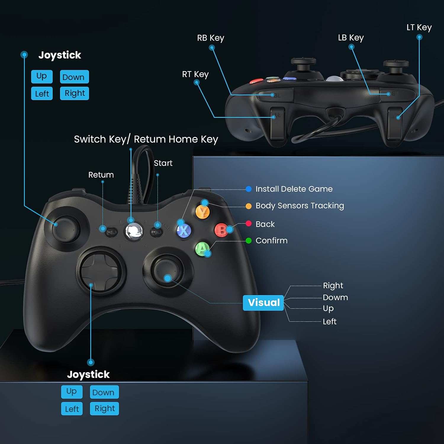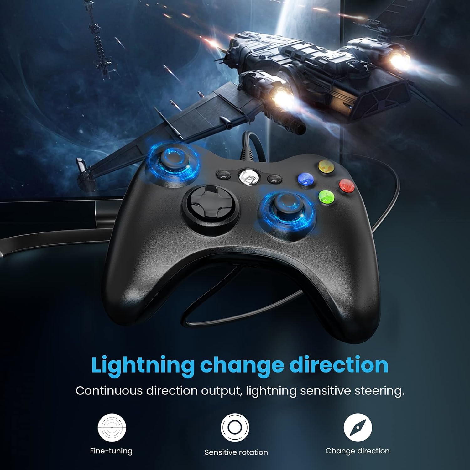 Fácil de operar: este controlador com fio é com um cabo USB de 7,2 pés que ajuda a estender o movimento. É bastante simples de operar, basta conectar o Wired Controller em uma das duas portas USB na frente do console para 360 ou conectar ao seu computador (NENHUM software necessário), inicie sua jornada de jogo.